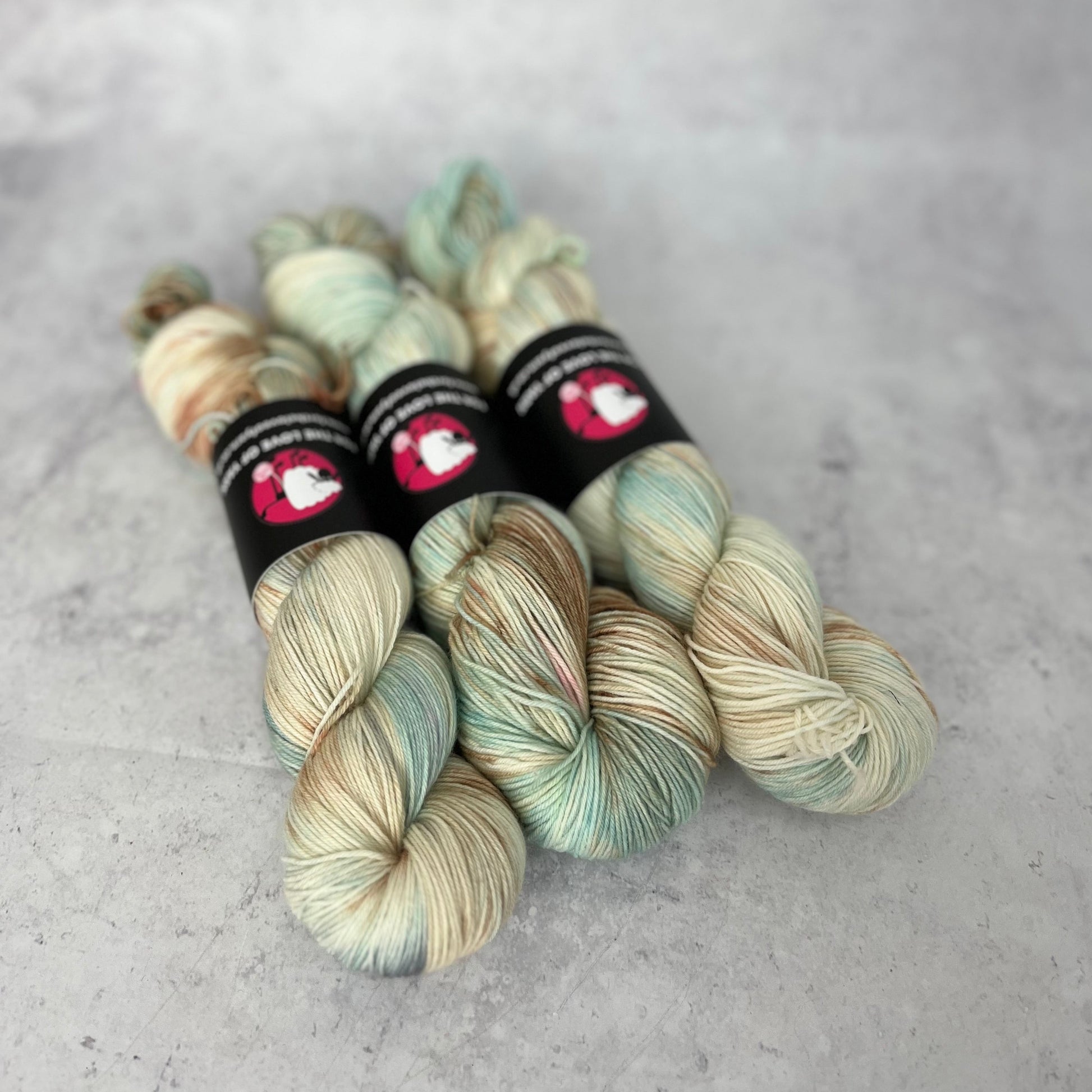 Ok, gotta confess.. we really don't love this one. It's a beautiful yarn - it's just not very "us"! Robin's egg blue mottled with soft brown and cream. This is the yarn you go for when you've got colour poisoning and need a break.