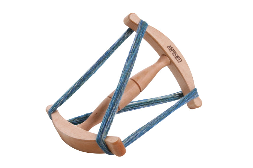 The niddy noddy is a very useful accessory for winding yarn from the spinning wheel bobbin. Made from turned Silver Beech hard wood, the specially shaped crossbars allow the skein (hank) of yarn to slide off easily when made. It is easy to dismantle for storage or transportation.