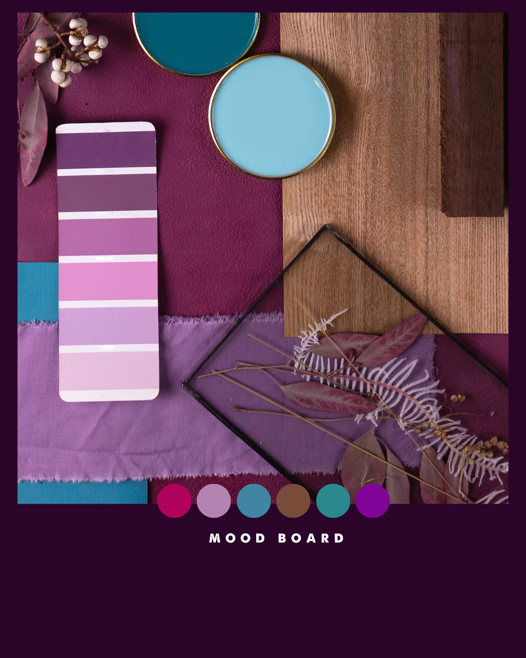 Each box contains 2 100g skeins of yarn in your chosen yarn base, dyed inspired by our chosen moodpboard. This year its opulent royal purples, deep rich teal and warming tones to bring it all together.