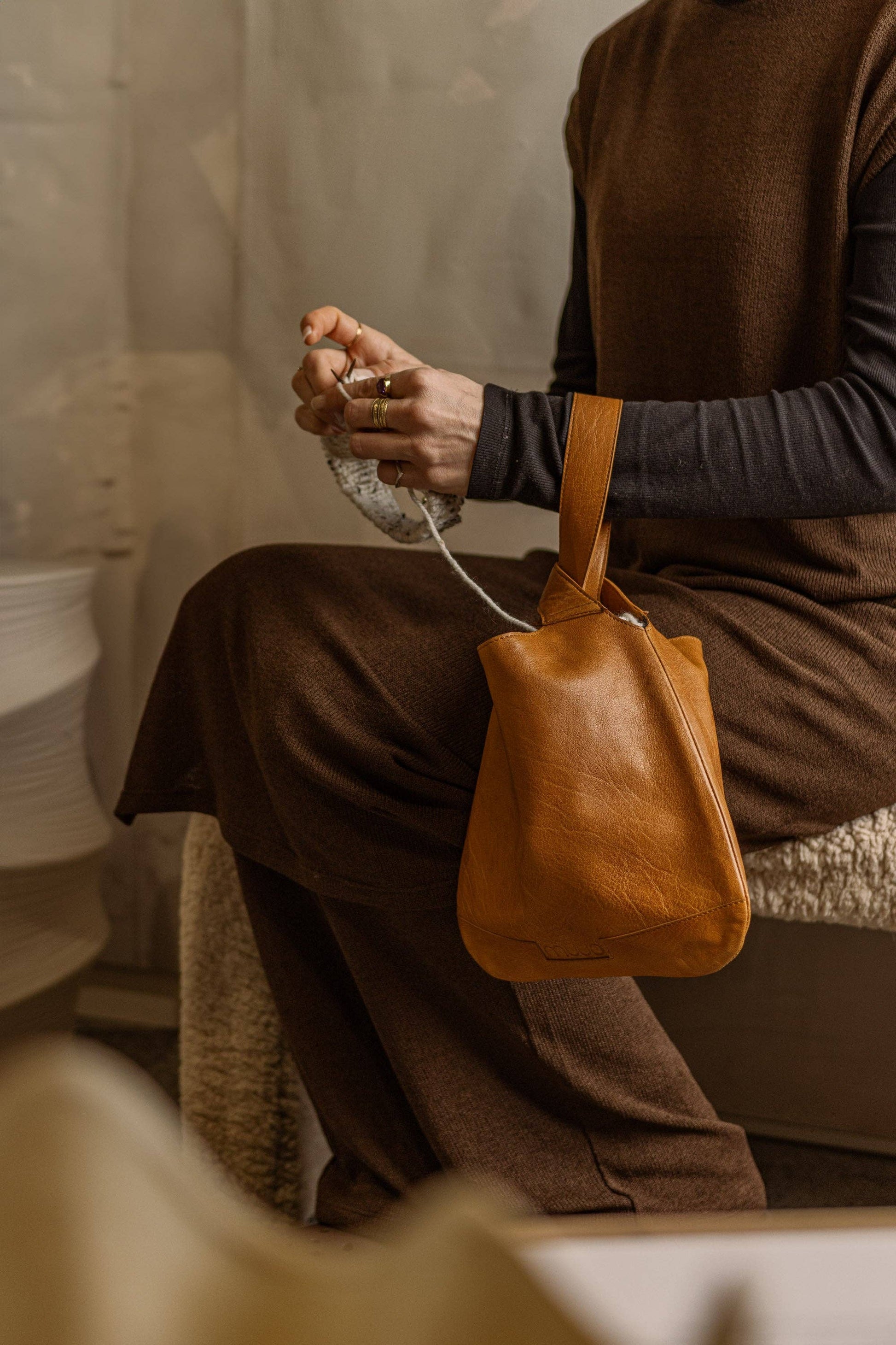 Stylish Handbag in Premium Leather The Dzana handbag, crafted by Muud, is a chic and robust accessory. Its genuine leather is revered for its durability, softness, and innate charm. The Project bag boasts a versatile design that complements different outfits and occasions with ease. The handles are criss-crossable, making it perfect for wrapping around your wrist and carrying with you wherever you go, which is designed in the style of a Japanese knot bag.