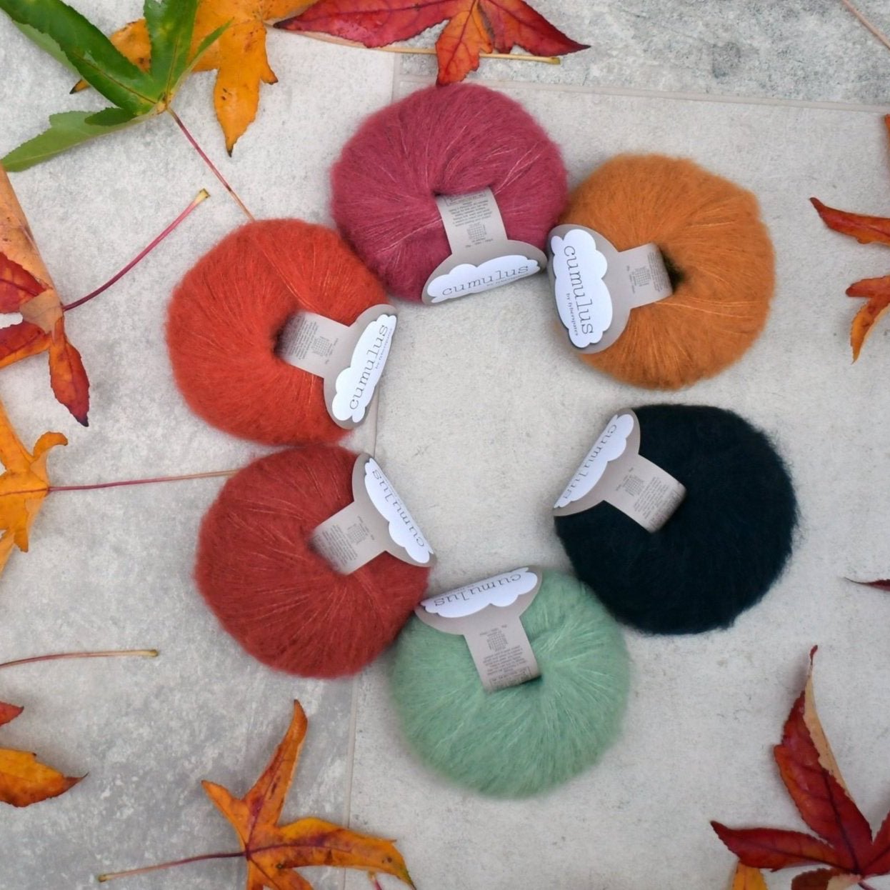 A heavy lace/3 ply weight yarn. This super soft yarn has a glistening silk core with a gentle halo of supersoft alpaca like soft pillowy clouds hence the name Cumulus.