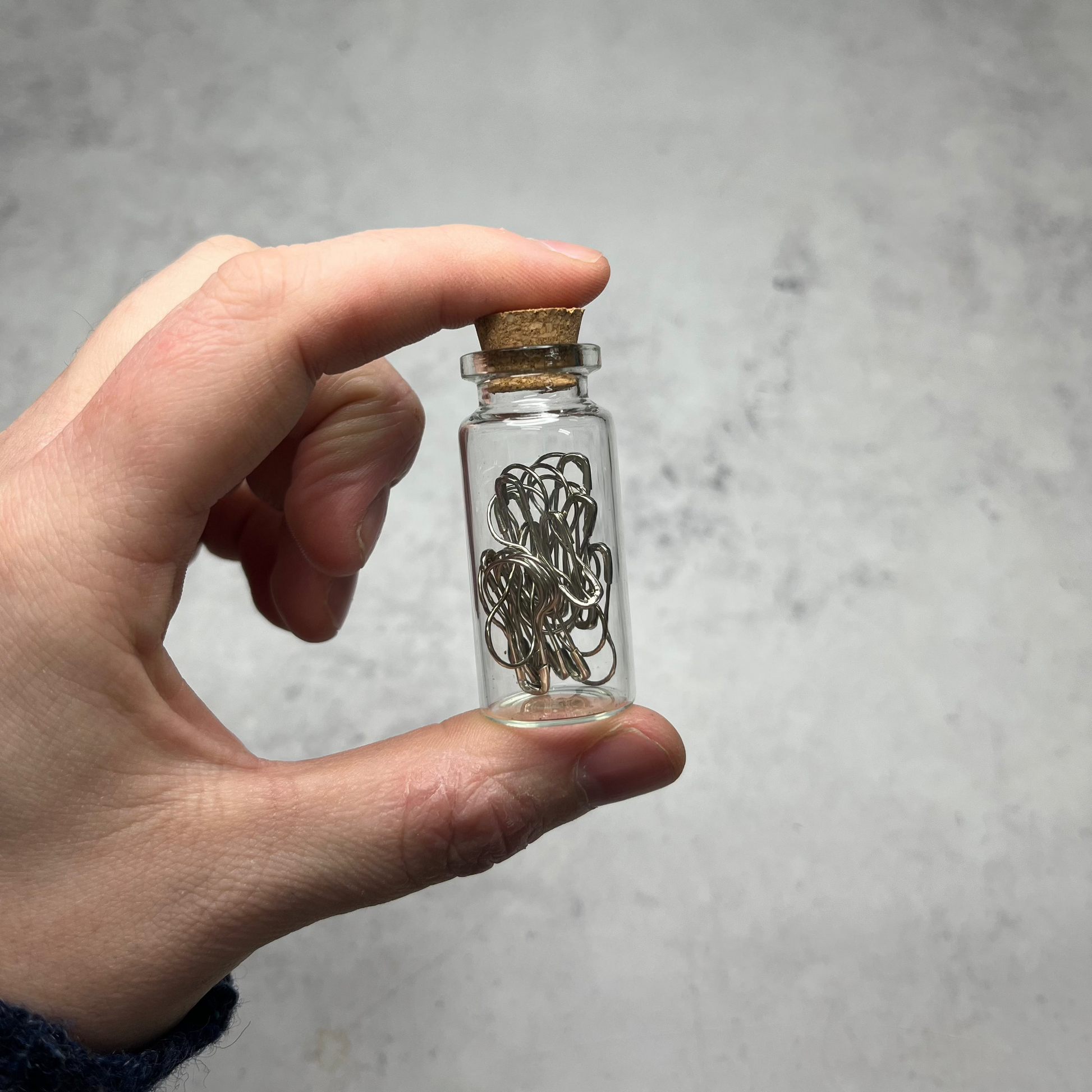 x20 metallic bulb pin markers in a little glass storage bottle.