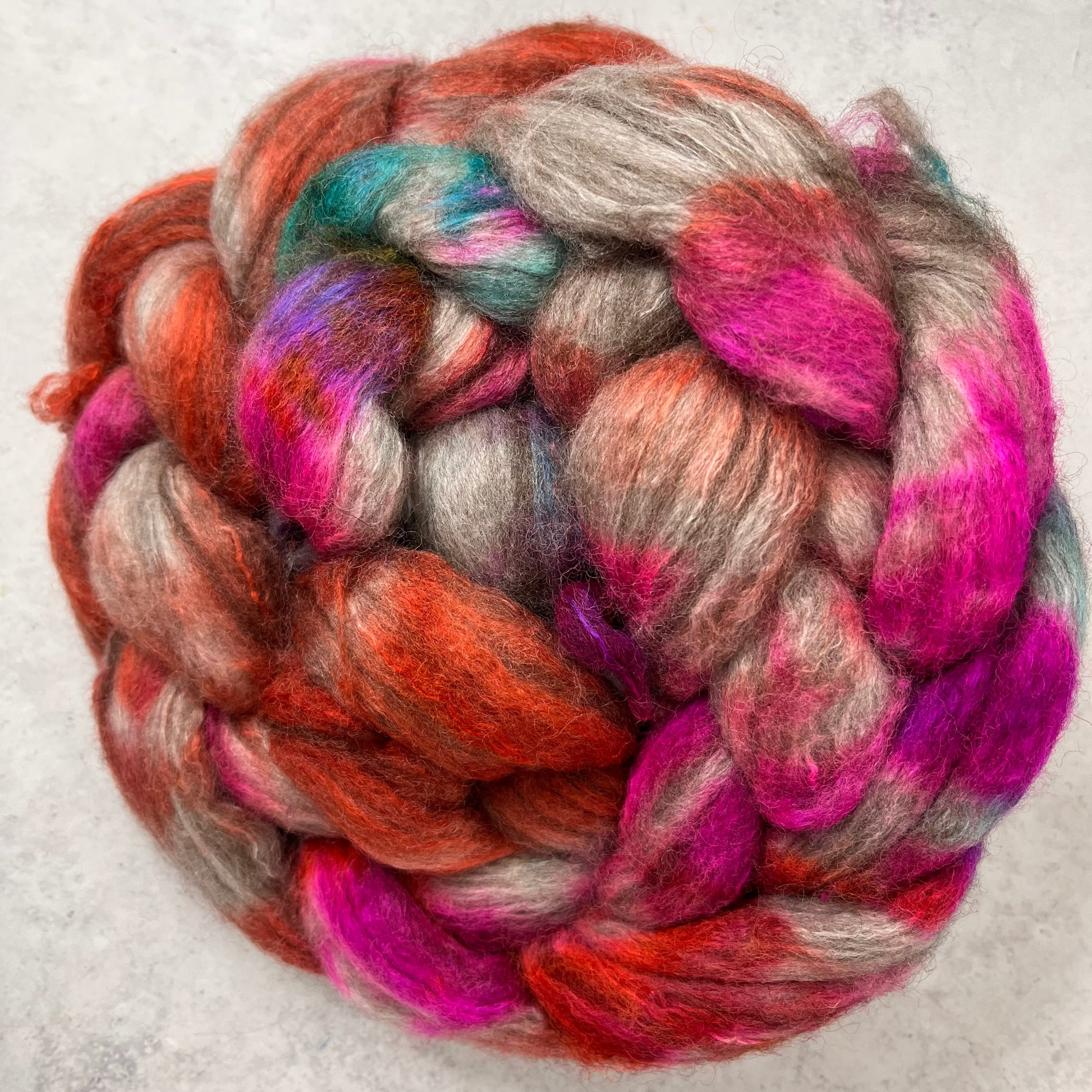 Warm grey when undyed, this stunning fibre lends itself to the world of hand dyeing and spinning.