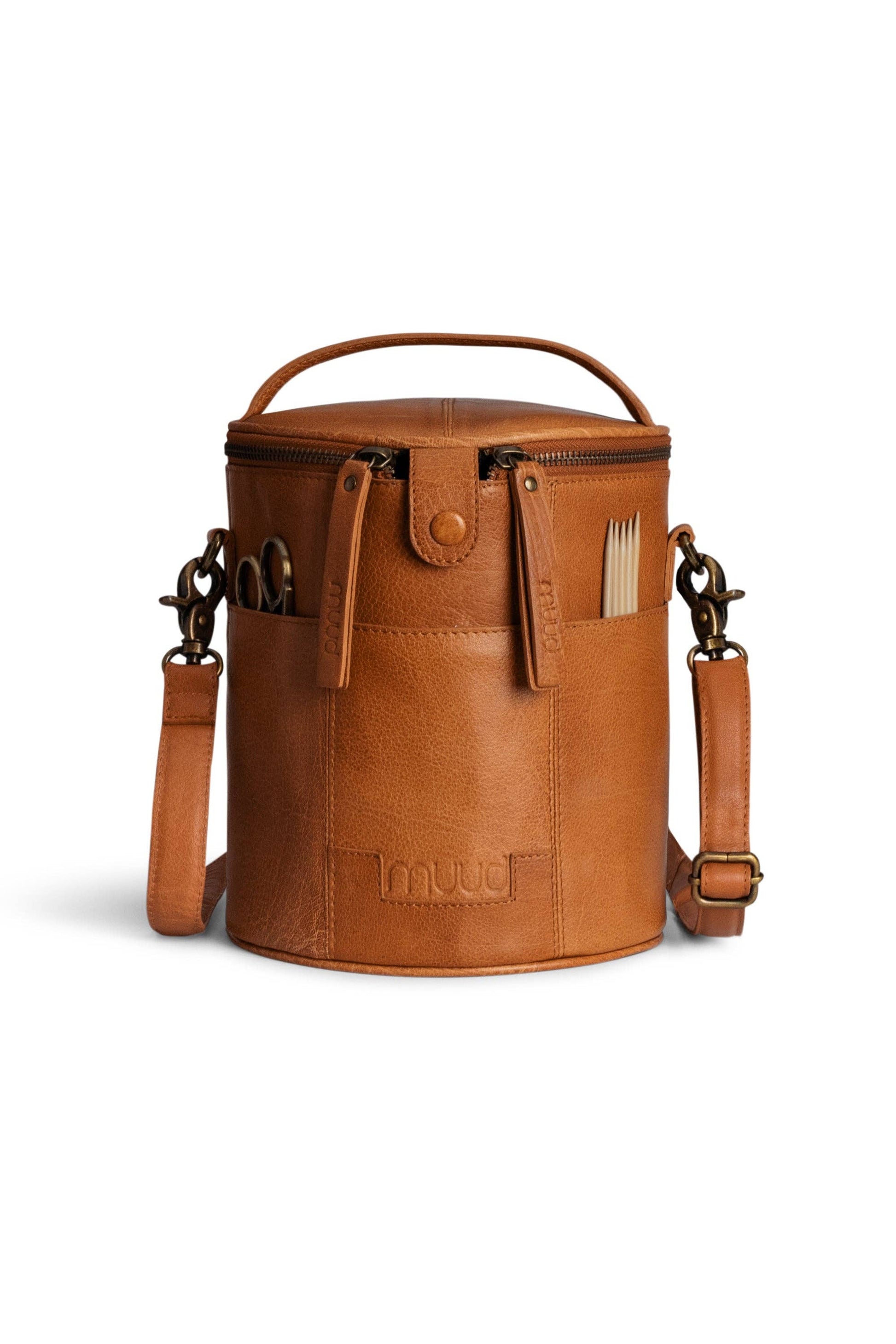 The Crossbody bag is designed with thoughtful details that make it easy to take your creative projects on the go. You can also use it as stylish yarn storage at home or as an elegant toiletry bag when you travel. With practical pockets on both the inside and outside, the project bag provides ample space for most of your equipment.