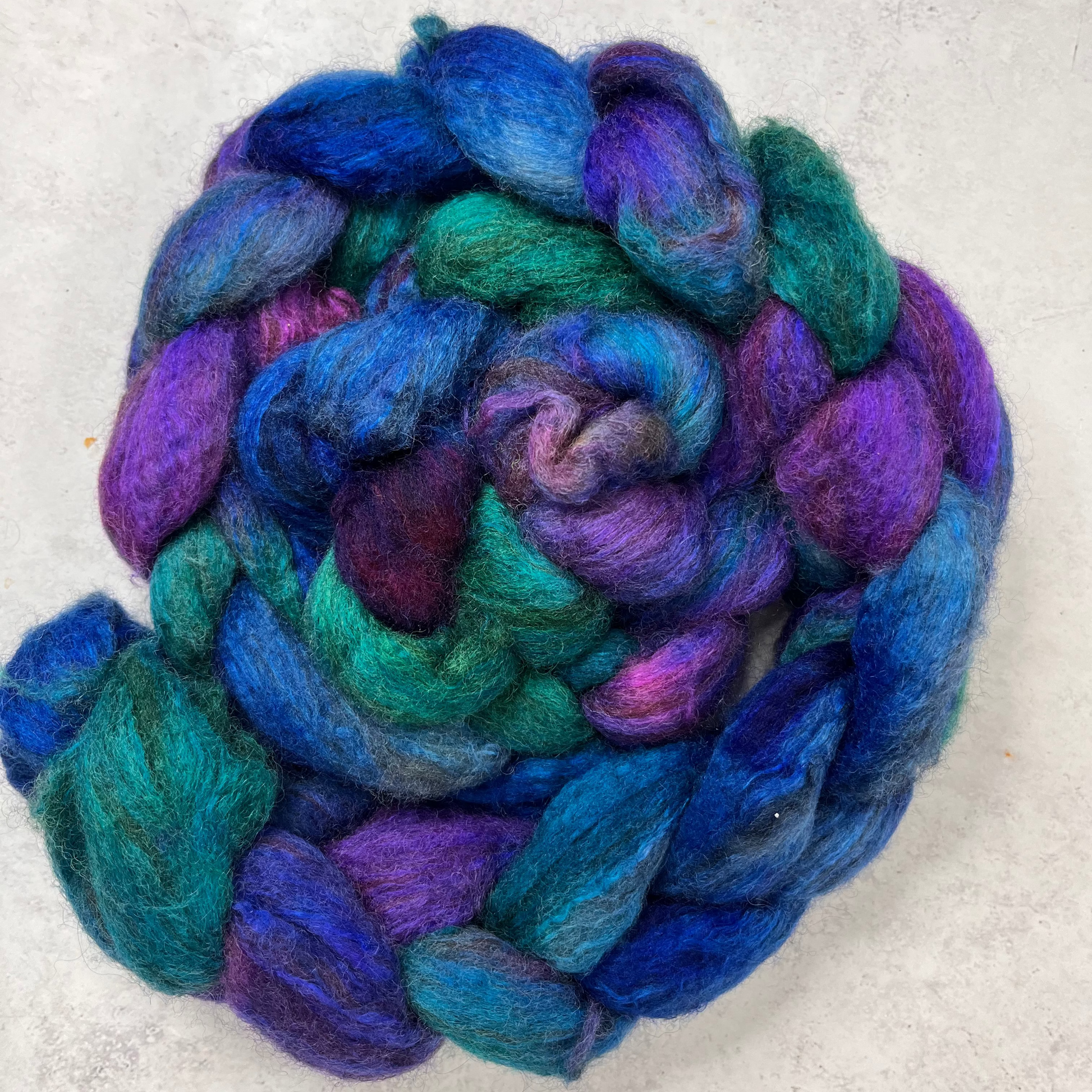 Warm grey when undyed, this stunning fibre lends itself to the world of hand dyeing and spinning.