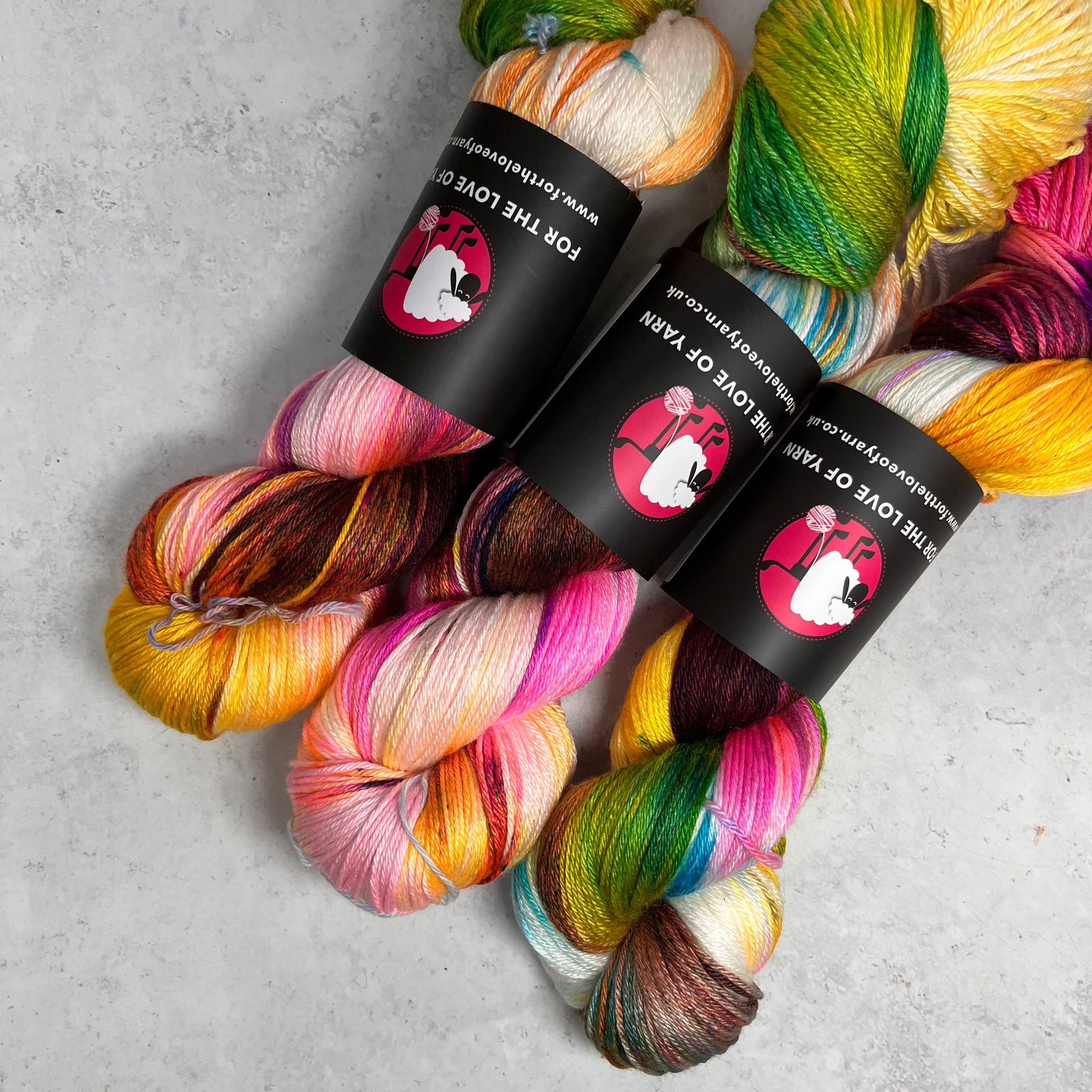 Today, For The Love of Yarn is based in a bright, bustling studio in the heart of Glasgow, Scotland. We dye vibrant, colourful yarns, stock a wide variety of beautiful notions and accessories. We're proud to have built a growing community of makers who inspire, support, and celebrate one another.